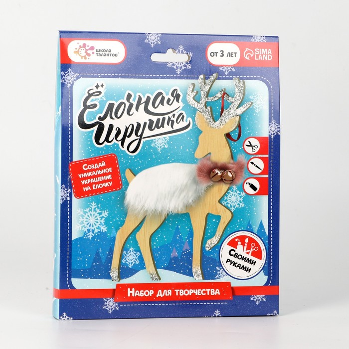 ШКОЛА ТАЛАНТОВ Набор для творчества Елочная игрушка деревянная с декором, олень