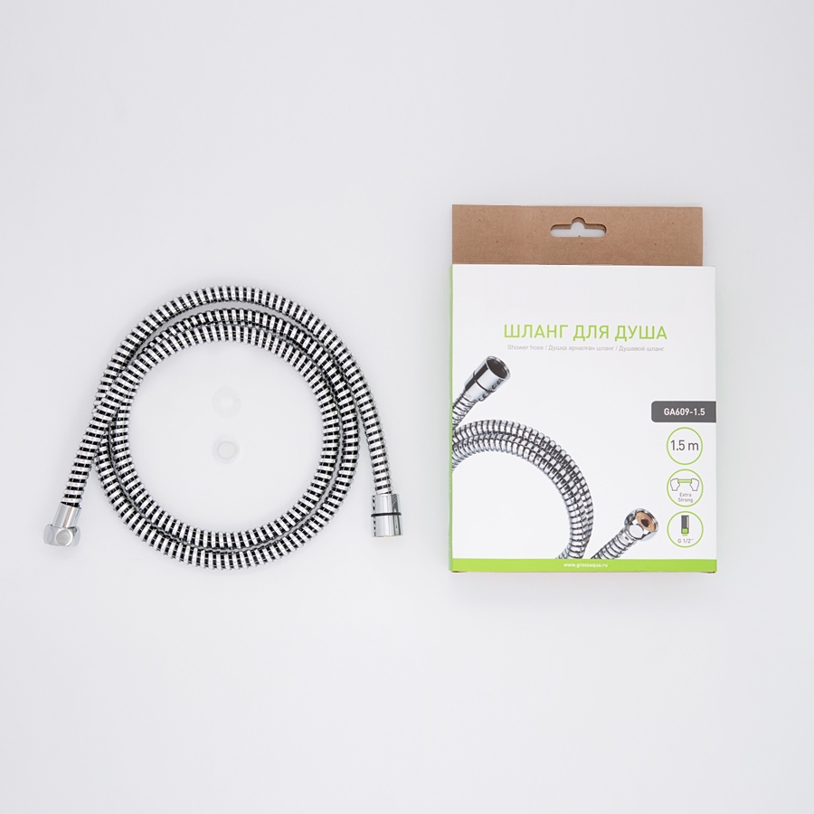 Хромированное покрытие с глянцевым эффектом придаёт изделию стильный блеск и защищает поверхность от потускнения. Покрытие стойко к мелким царапинам и сохраняет эстетичный вид на протяжении всего срока службы. Очистить шланг просто — достаточно протереть его сухой тканью, чтобы вернуть первозданную чистоту и сияние.
