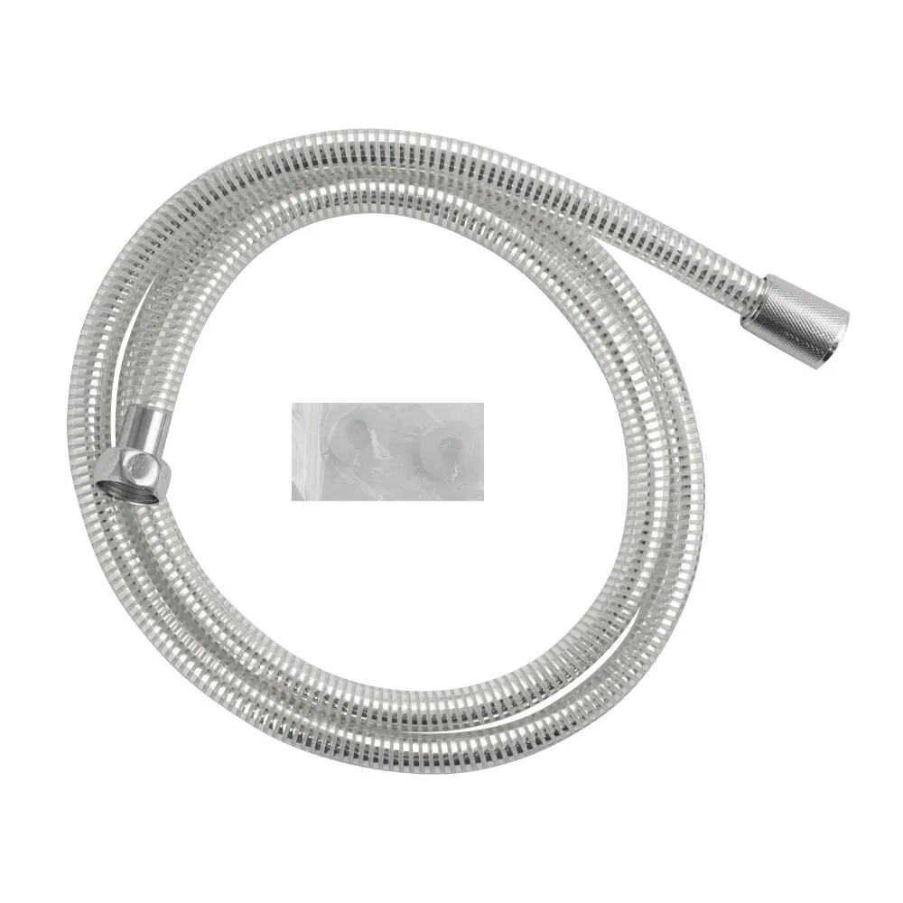 Универсальный гибкий душевой шланг в пластиковой оболочке, оплетка хромированная, внешняя оболочка произведена из современного ПВХ, сочетает в себе отличные эксплуатационные характеристики и приятный дизайн. Достоинства этого устройства — в его особой структуре: трубка не выпадет из лейки благодаря прочному крепежу.   Прочный и надежный шланг, прост в монтаже, удобен в использовании, подключение имп/имп-конус. Выходы шлага: 1/2. Тип соединения оплетки: двойной замок. Длина шланга 150 см.