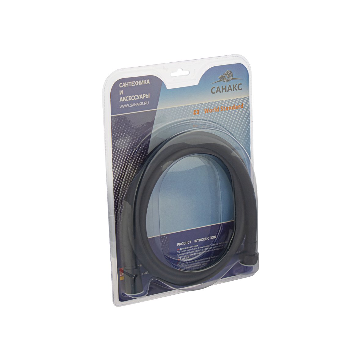 Шланг для душа Санакс 3794 представляет собой универсальное решение для вашей ванной комнаты. Это армированный душевой шланг длиной 150 сантиметров, выполненный в стильном черном цвете.