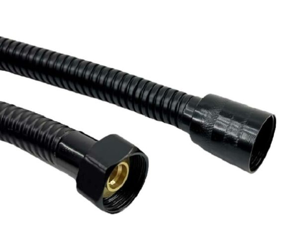 Шланг для душа Savol S-ORG001H длиной 150 см (1,5 м) выполнен в чёрном матовом цвете, что придаёт ему стильный и современный облик, выгодно выделяясь на фоне стандартных хромированных моделей.
