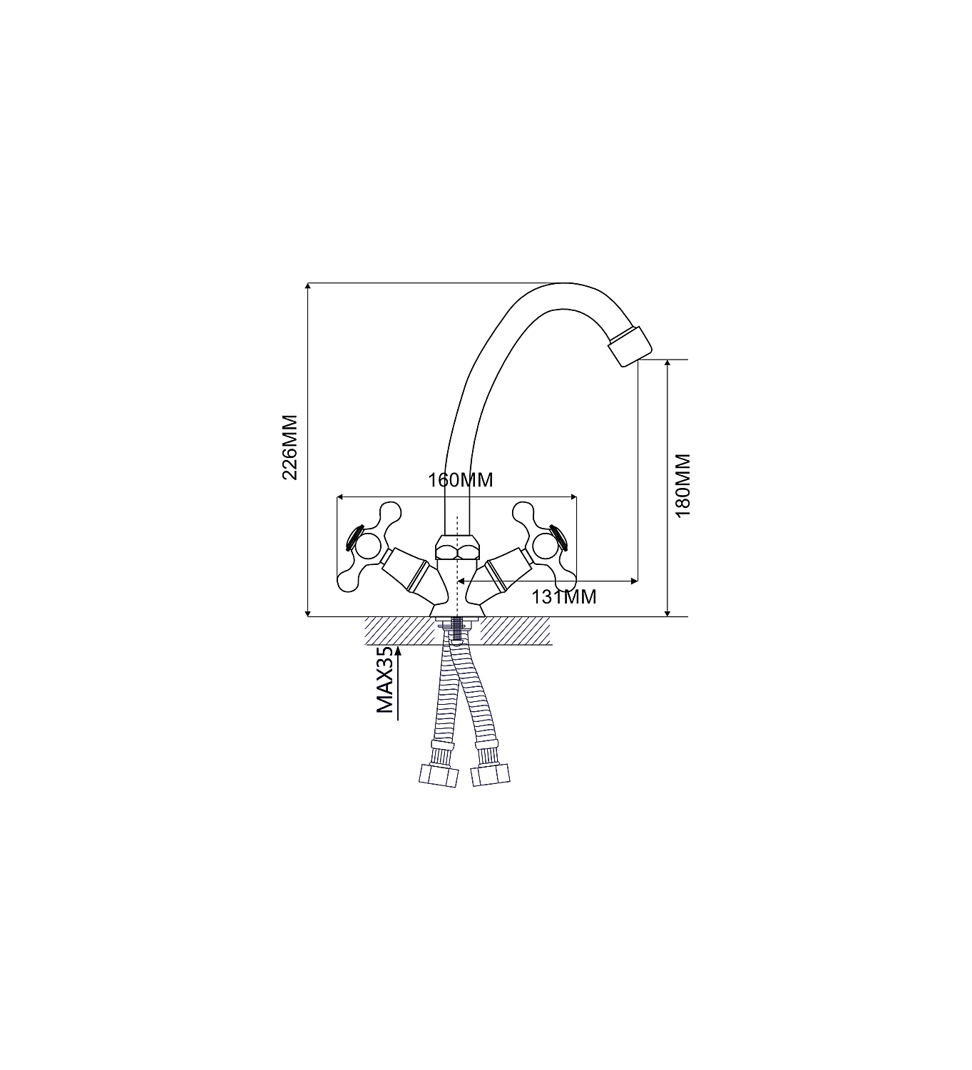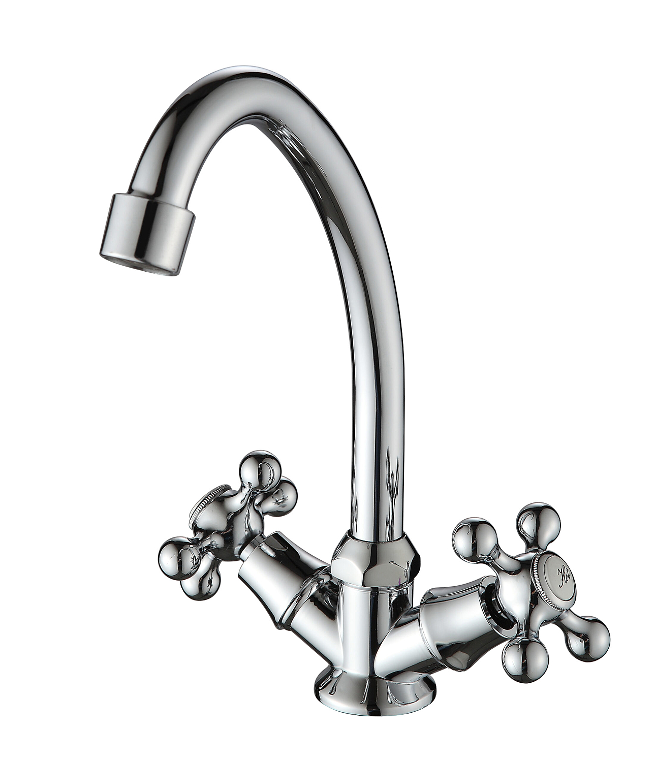 Особенностью данной модели является наличие двух отдельных вентилей для управления подачей горячей и холодной воды, что делает использование смесителя максимально удобным и интуитивно понятным. Поворотный излив позволяет легко направлять струю воды в любую часть мойки, обеспечивая максимальный комфорт при использовании.
