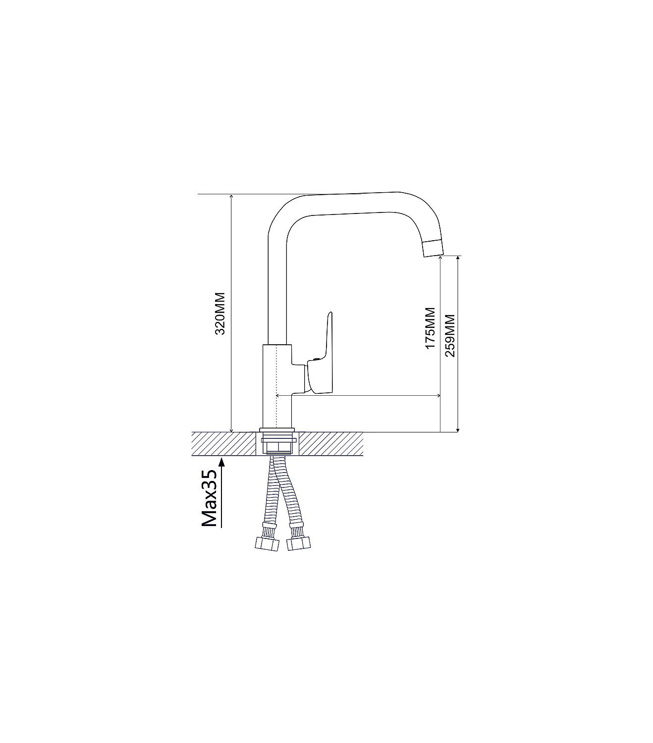 Смеситель для кухни Ammore A5503-A с высоким изливом — это отличное решение для вашей кухни, сочетающее в себе современный дизайн и высокую функциональность. Изготовленный из цинкового корпуса с комбинированным покрытием, он обладает стильным черным матовым цветом, который придаст вашей кухне элегантный вид. Поворотный излив высотой 259 мм и длиной 194 мм обеспечивает удобство при выполнении различных кухонных задач, таких как мытье посуды или наполнение больших емкостей. Керамический картридж диаметром 35 мм гарантирует плавное и точное управление потоком и температурой воды, делая использование смесителя комфортным и удобным. Смеситель оснащен аэратором, который улучшает поток воды и способствует её экономии. Гибкая подводка 1/2", длиной 40 см, упрощает установку и обеспечивает долговечность эксплуатации. Благодаря своему качественному исполнению и продуманному дизайну, Ammore A5503-A станет надежным и стильным дополнением к вашей кухне.