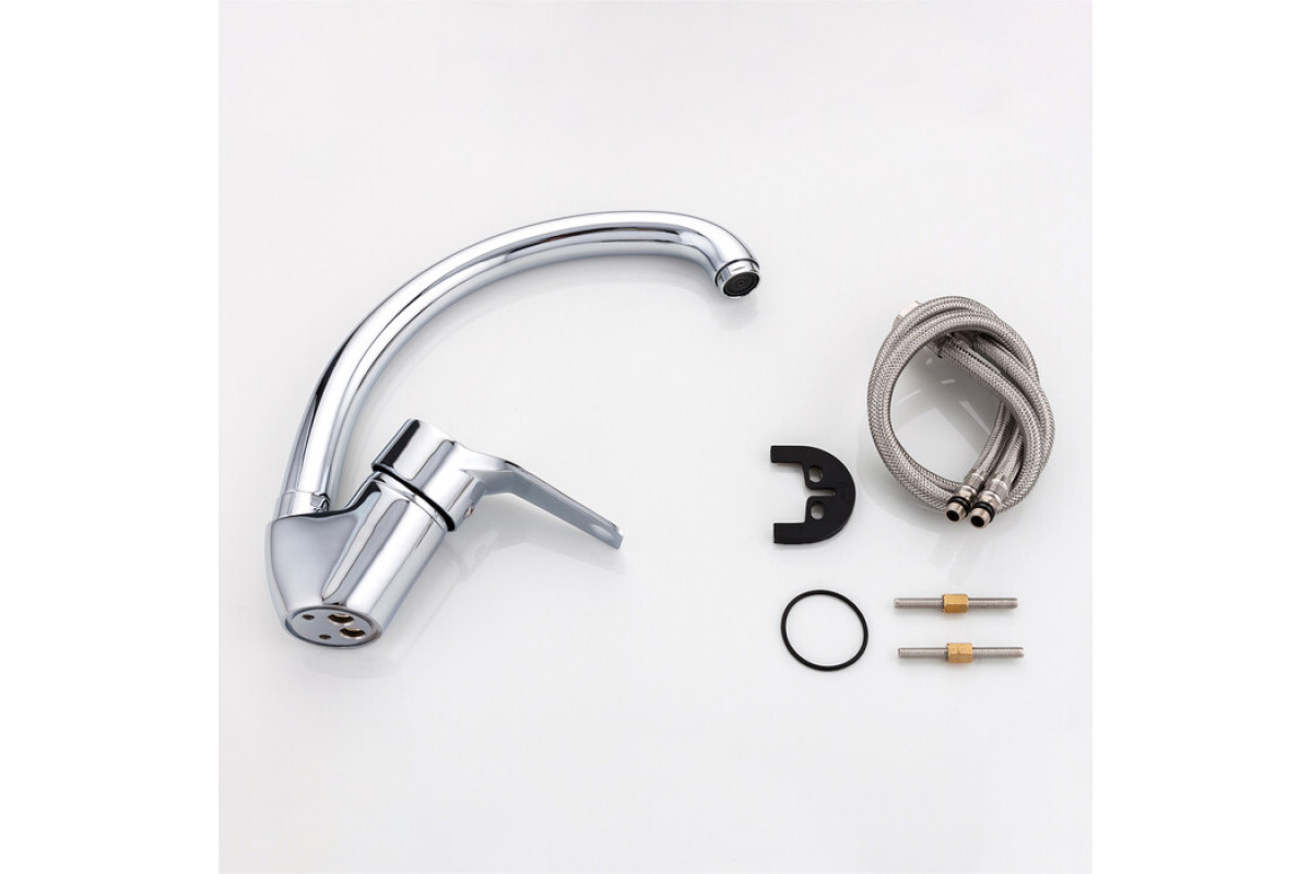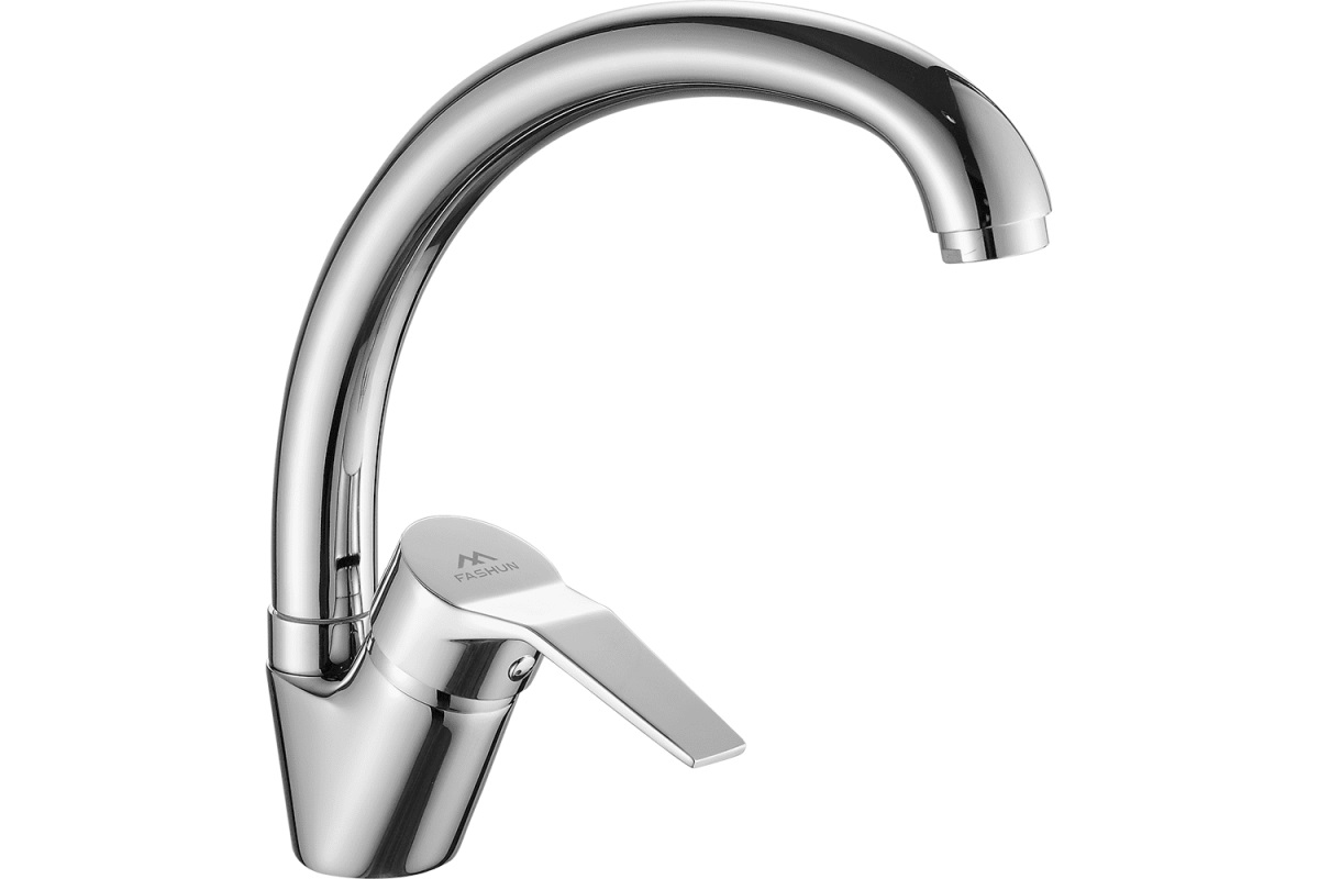 Смеситель для кухни Fashun A4163 выполнен из прочной латуни с хромированным покрытием, обеспечивающим блеск и долговечность. Крепление смесителя осуществляется с помощью двойной шпильки, что гарантирует надежную фиксацию на мойке или столешнице. Управление осуществляется одним рычагом, что позволяет удобно регулировать температуру и напор воды. Излив смесителя поворотный, что добавляет удобства при эксплуатации, позволяя легко маневрировать потоком воды. В комплекте идет гибкая подводка длиной 450 мм для упрощения установки. Этот смеситель сочетает в себе стиль и функциональность, становясь отличным дополнением для любой кухни.