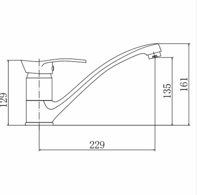 A4201 смеситель для кухни, H=161 мм хром латунь картридж D=40 мм излив H=135 мм гибкая подводка: 450 мм в комплекте крепёж: двойная шпилька