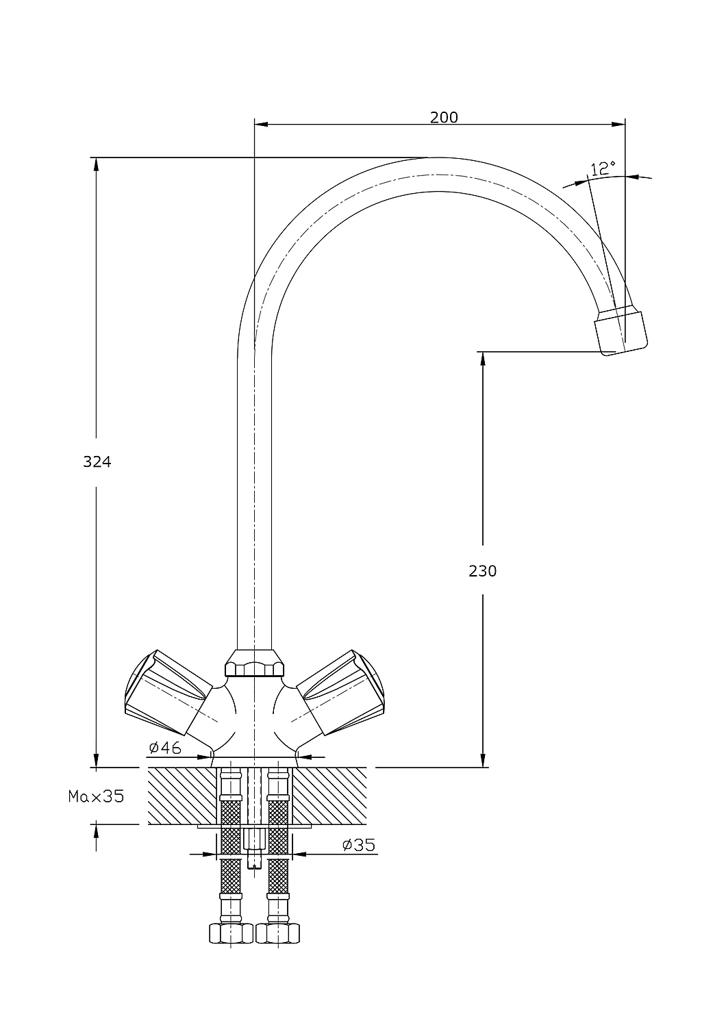 Смеситель для кухни с высоким, поворотным изливом RUSH арт. PI7950-23 с металлической ручкой из коллекции Pioneer изготовлен из высококачественной латуни и имеет вентильное управление. В смеситель установлены кран-буксы (RSH502) с керамическими пластинами. Высота смесителя 324 мм. Излив поворотный (360гр), 200 мм. Высота излива до аэратора 230 мм. Аэратор изготовлен из пластика с нержавеющим корпусом, угол наклона - 12 гр. В комплекте универсальная присоединительная группа (шпилька-2шт), гибкая подводка с латунными гайками 35см - 2шт, фум-лента, индивидуальный пакет, паспорт, гарантийный талон.