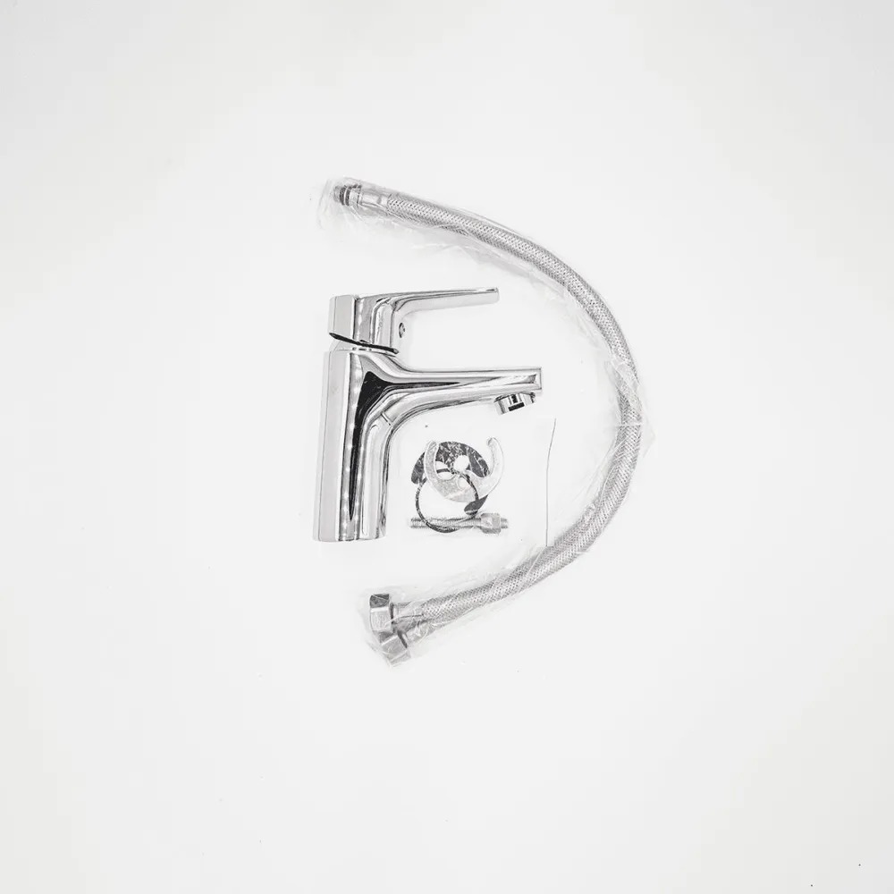 Смеситель для раковины Aquanika Eco AQE1001CR в хромированном исполнении представляет собой однорычажную модель из латуни, выполненную в современном стиле с лаконичным кубическо‑цилиндрическим дизайном. Устройство имеет компактные размеры: длина — 13,7 см, ширина — 6,4 см, высота — 13,9 см. Излив фиксированной конструкции отличается длиной 10 см и высотой 7,1 см, обеспечивая направленный поток воды без возможности поворота. Управление осуществляется удобным рычагом, а плавная регулировка температуры и напора воды достигается за счёт надёжного керамического картриджа. Хромированное глянцевое покрытие придаёт изделию зеркальный блеск, защищает поверхность от царапин, потускнения и водяных разводов, облегчая уход. Смеситель монтируется на одно отверстие, подключается к водопроводу с помощью гибкой подводки стандарта ½ дюйма. В комплект входят аэратор, улучшающий качество струи, и необходимый набор крепёжных элементов. Донный клапан в комплектацию не предусмотрен.