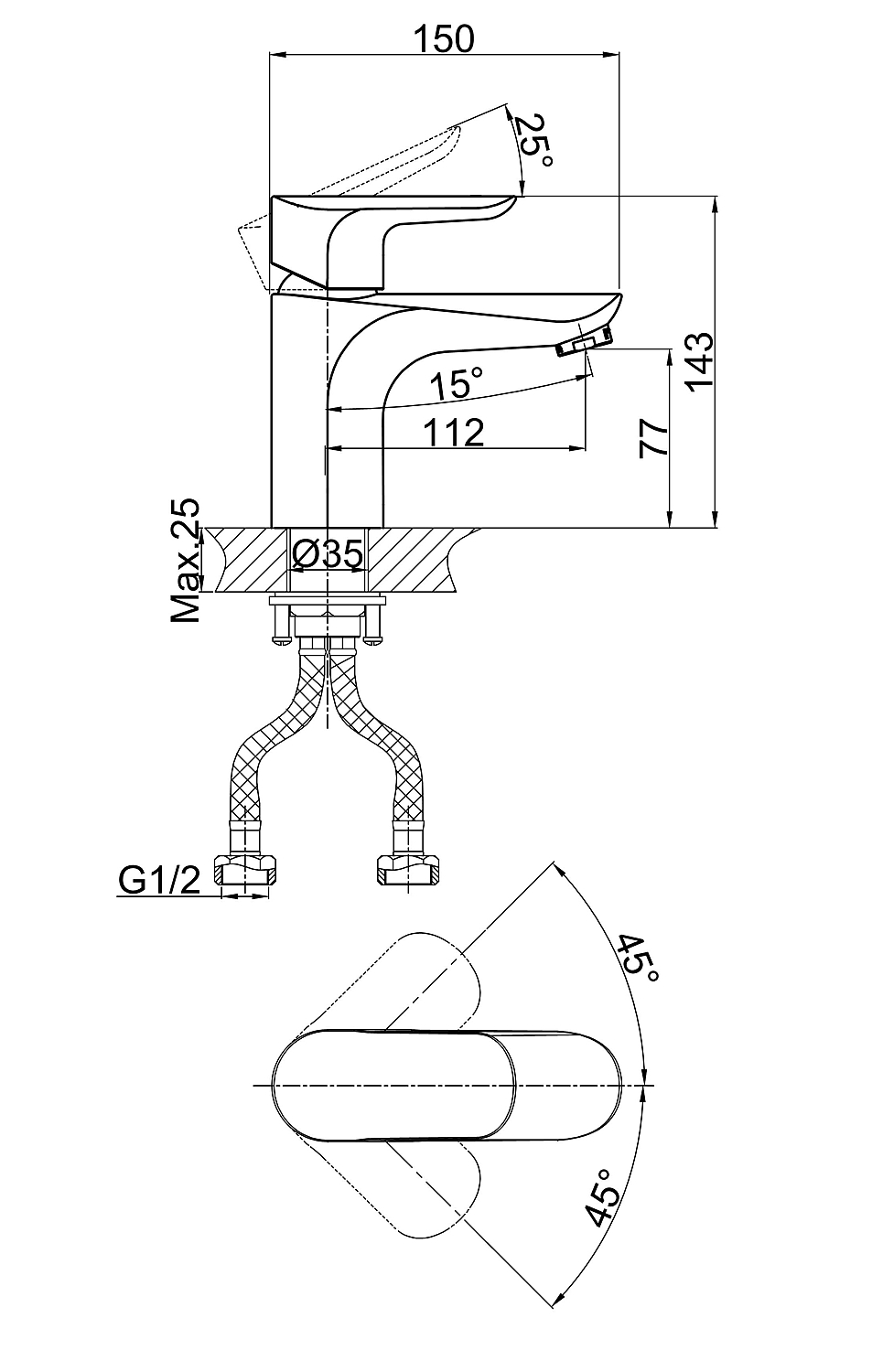 Высота смесителя, мм
