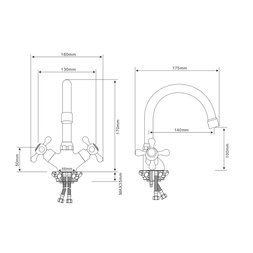 Двухзахватный смеситель для раковины ANARI с удобным поворотным изливом. Смеситель изготовлен из высококачественной латуни, гарантирующей долгий срок службы и устойчивость к коррозии. Его хромированное покрытие защищает от царапин и потертостей, сохраняя первозданный блеск на протяжении многих лет.