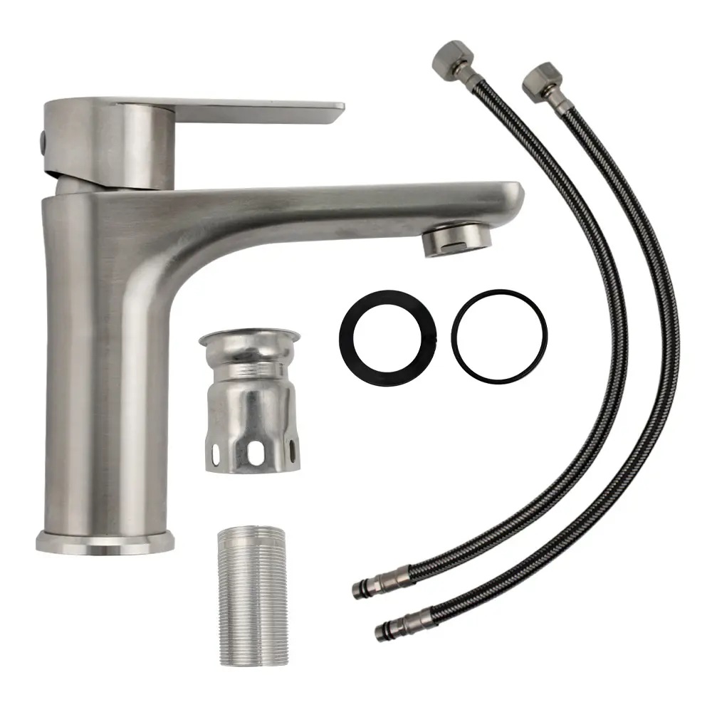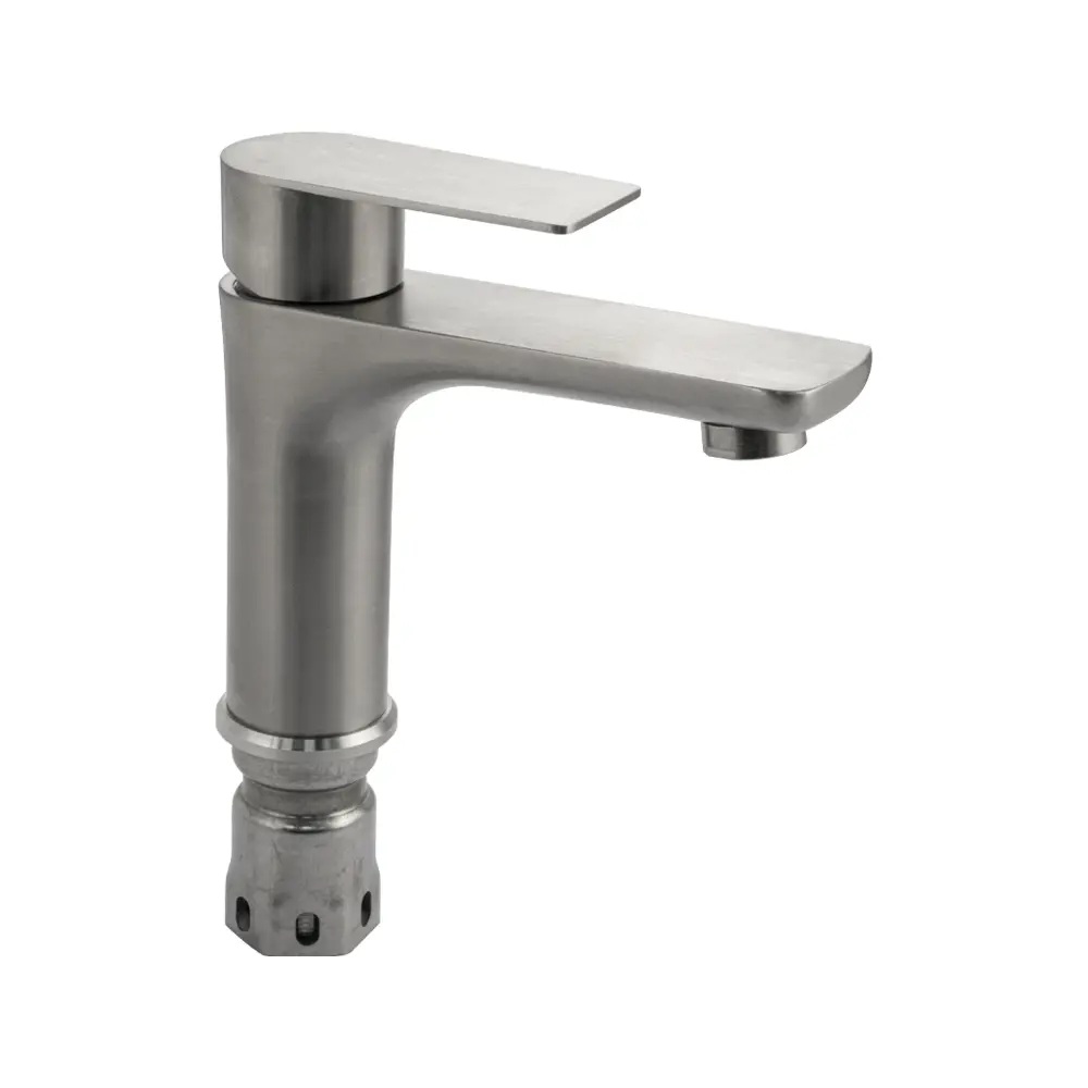Смеситель для раковины из нержавеющей стали SUS 304, шаровый, цвет САТИН с удлиненным литым изливом 1 2см выполнен в классическом дизайне и прекрасно подходит под любой стиль. Сменный аэратор насыщает воду кислородом, делая ее прикосновение более мягким и нежным. Прямой излив направляет воду в центр раковины, не заставляя далеко тянуться и не разбрызгивать воду вокруг. Ручка на кермическом картридже досконально точно регулирует напор и температуру воды. Смеситель для раковины в ванну наполнит Ваш санузел изяществом и подчеркнет вкус и индивидуальность своего владельца. В комплекте поставляется: смеситель, гайка крепления с прокладками, подводкой. Картридж керамический 35 мм.