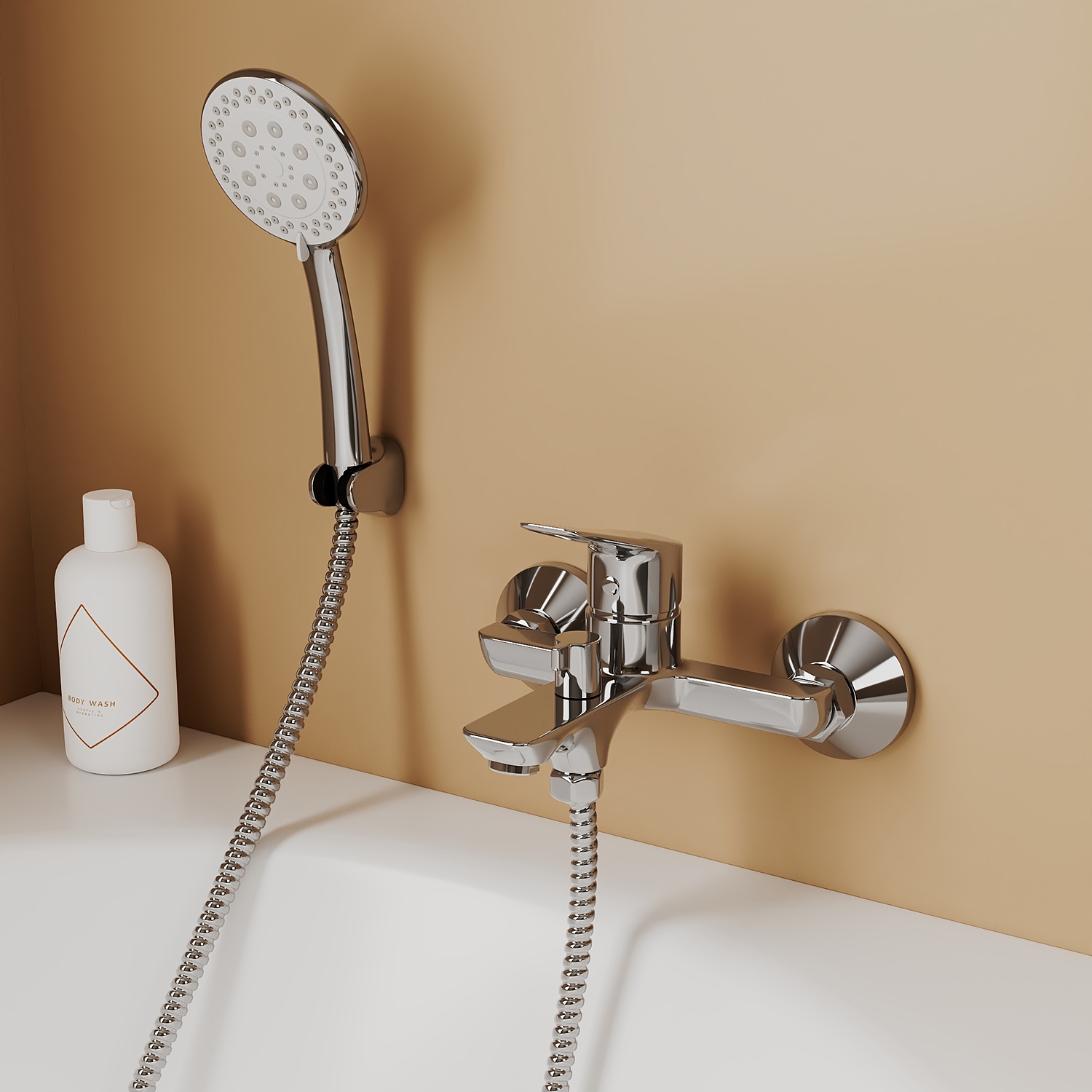 В комплекте 5-режимная душевая лейка и душевой шланг длиной 1,5м., держатель душевой лейки, эксцентрики, индивидуальный пакет, паспорт, гарантийный талон.