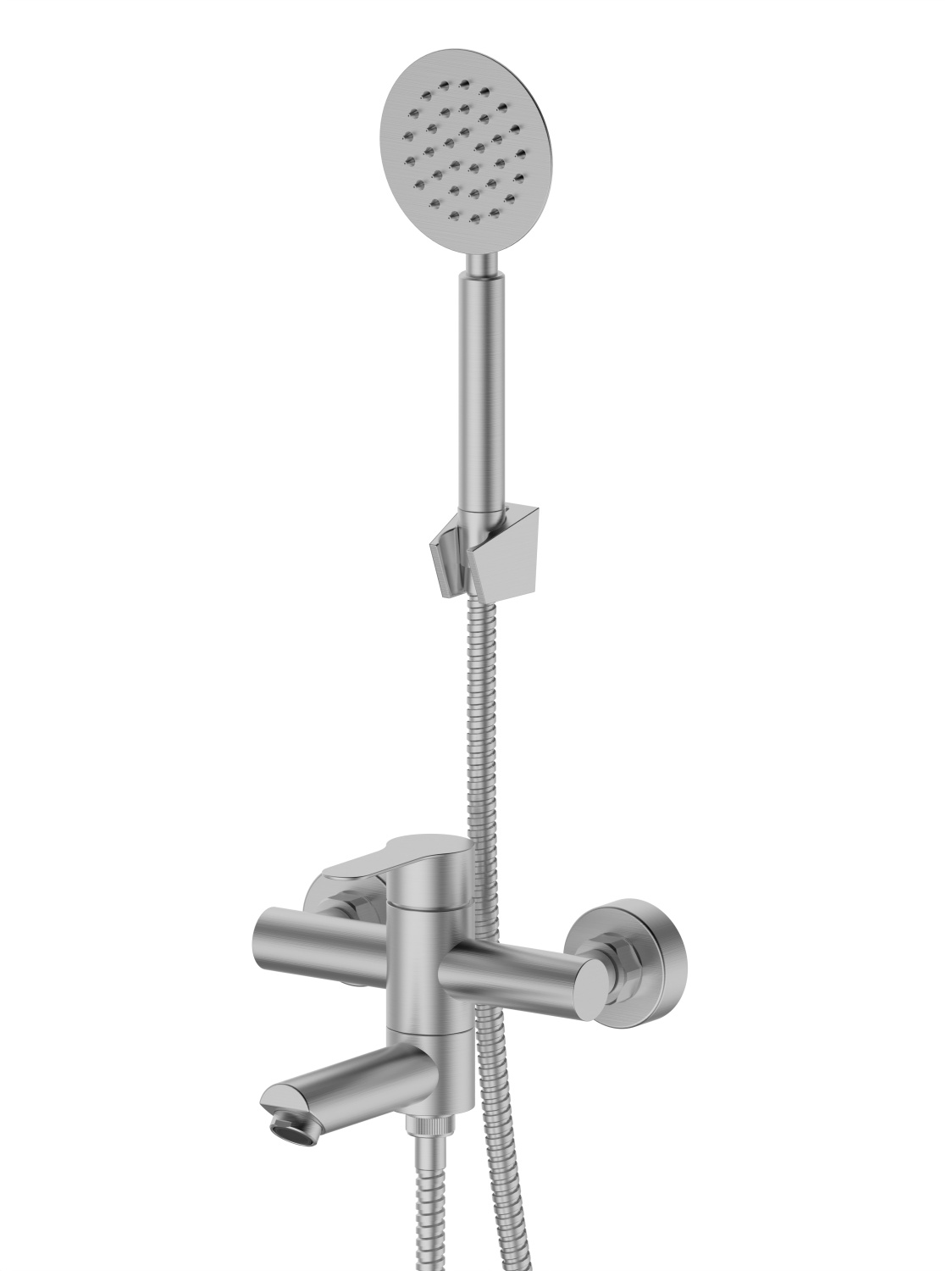 В комплекте однорежимная душевая лейка и душевой шланг длиной 1,5м., держатель душевой лейки, фум-лента, индивидуальный пакет, паспорт, гарантийный талон.