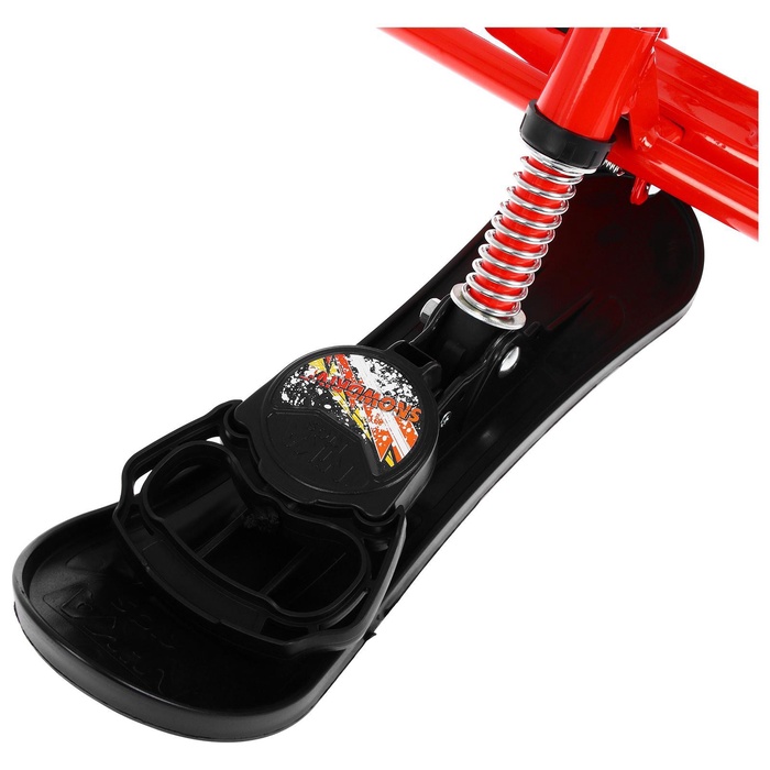 Снегокат предназначен для перевозки детей по плотному снегу или льду, катанию с горок. Имеет сварную конструкцию из стальных труб, пластиковых элементов и мягкое сиденье, обтянутое искусственной кожей с рисунком. Оснащён буксировочным тросом с автоматической намоткой и системой амортизации, которая обеспечивает комфортную поездку по крутым горкам и неровным поверхностям. Усиленный тормоз эффективен на обледенелой поверхности.