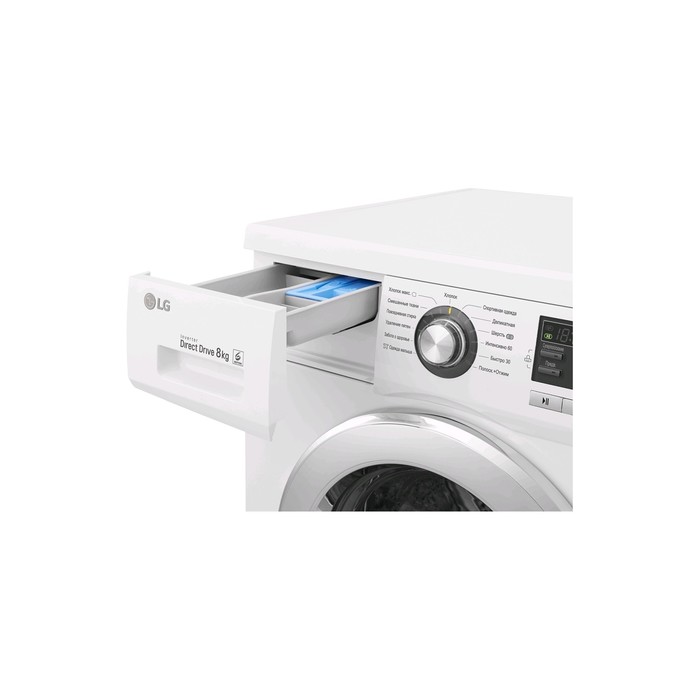 Стиральная машина LG F1096TD3 рассчитана на полную загрузку бельем до 8 кг. Барабан функционирует в шести разных алгоритмах движения в процессе работы. Интеллектуальное электронное управление позволяет легко выбрать нужные режимы для стирки из большого количества и самостоятельно установить температуру воды. Есть функция ручной стирки шерсти и пуховых вещей, экспресс-стирки, стирки деликатных тканей и детской одежды. Вся информация о работе машины отображается на цифровом сенсорном дисплее. После стирки барабан очищается от запахов и грязи.