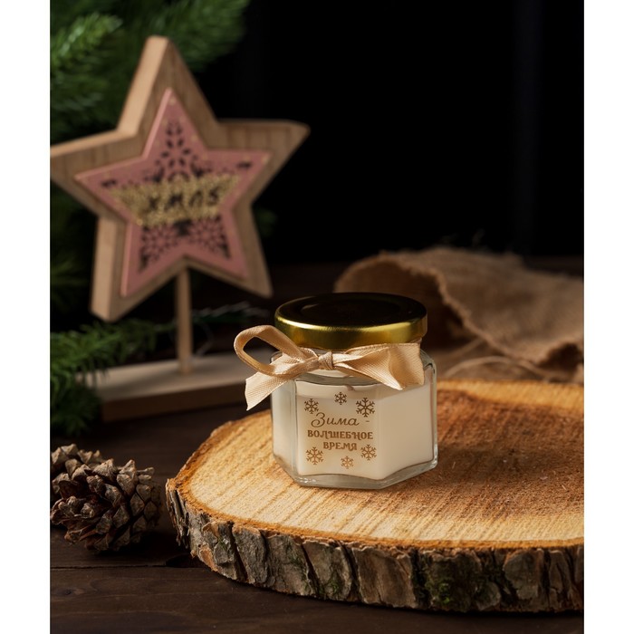Свеча новогодняя в банке «Зима - волшебное время», аромат ваниль, 5×5.5×5.5 см