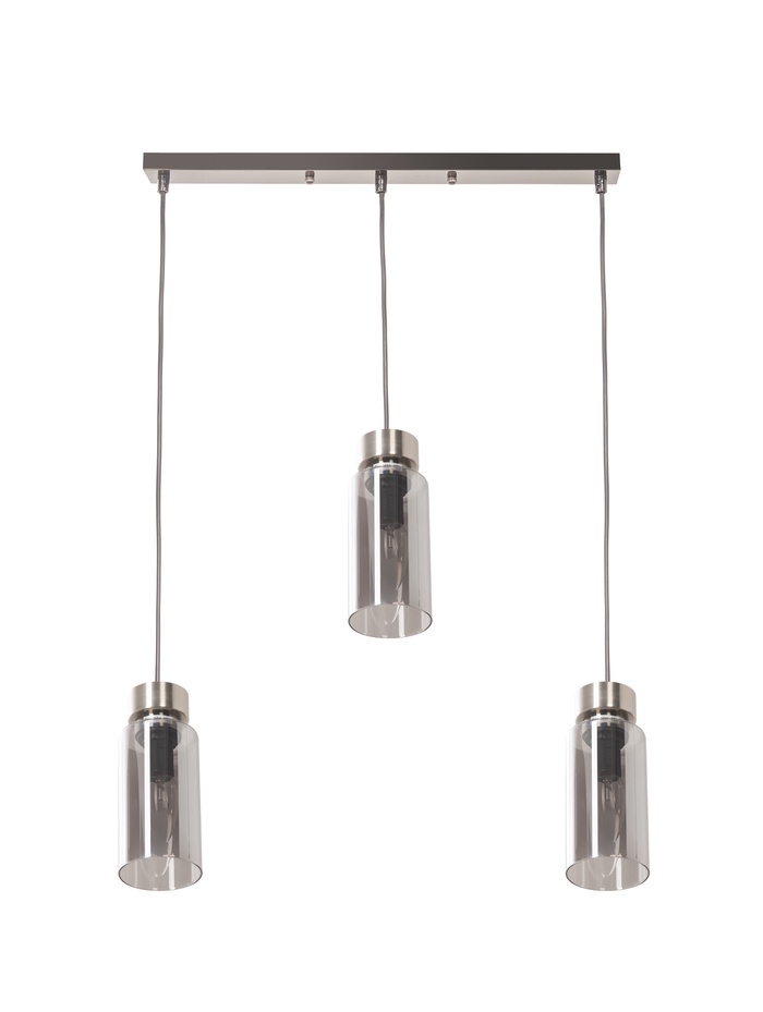 Подвесной светильник с тремя цилиндрическими плафонами формирует выразительную световую линию, которая подчёркивает геометрию пространства и создаёт равномерное освещение. Хромированное основание добавляет интерьеру современный акцент и визуальную лёгкость.