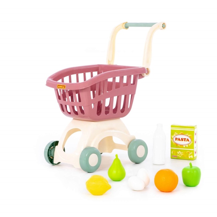 Тележка для маркета «Мини» с набором продуктов — яркий игровой комплект для сюжетных игр в магазин. Ребёнок сможет складывать покупки в тележку, перевозить их по комнате, играть в продавца и покупателя и придумывать собственные истории про поход за продуктами.