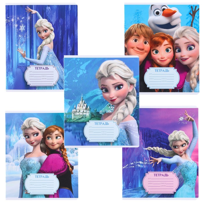 Тетрадь 12 листов, 5 видов МИКС, линейка, Холодное сердце