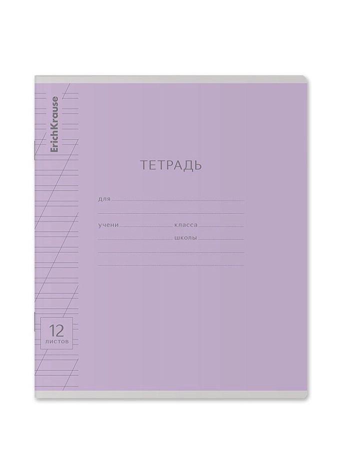 Тетрадь школьная ученическая формата А5+ (170х203 мм). Обложка из высококачественного мелованного картона плотностью 170 г/м2. В блоке 12 листов в косую линейку с полями. Бумага офсетная плотностью 60 г/м2. Цвет линовки - синий. Скругленные уголки обложки и блока. Тип скрепления - скоба.