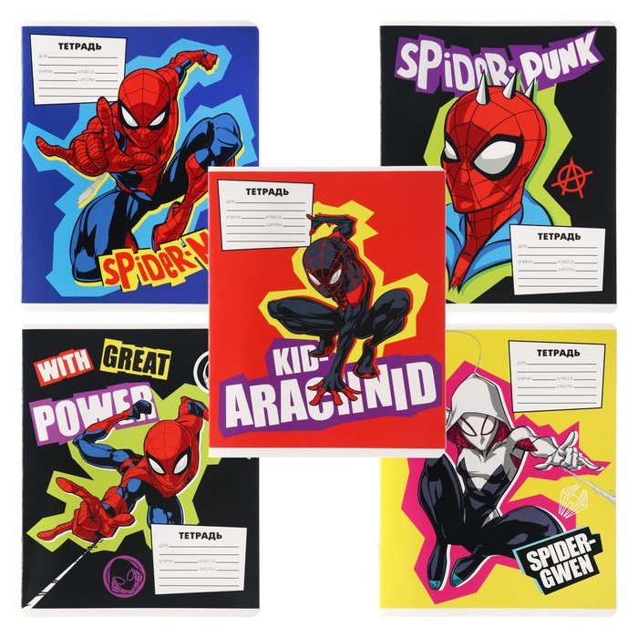 Тетрадь 18 листов, в линейку, набор МИКС — 5 ярких дизайнов с принтами «Человек-паук». Качественная бумага, прочные обложки с динамичными образами супергероя в маске и на фоне города. Идеальна для школы, записей и заметок. Отличный выбор для поклонников Спайдермена. Пусть каждый урок проходит с духом приключений, ловкости и настоящей суперсилы!