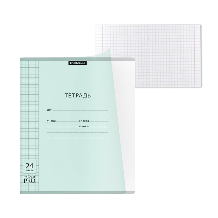Тетрадь 24 листа в клетку ErichKrause CoverPrо Pastel "Классика", пластиковая обложка, блок офсет, белизна 100%, мятная