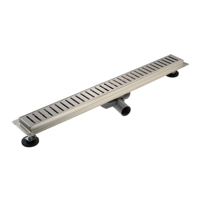 Линейный душевой трап ZEIN 7×70 см с вращающимся фланцем — система слива увеличенной длины с сатиновой отделкой. Фланец на 360° обеспечивает идеальное позиционирование.
