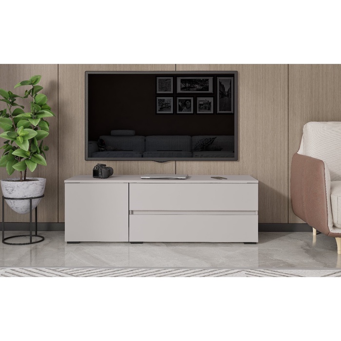 • Просторные ящики: два вместительных выдвижных ящика и ниша с дверцей, обеспечат хранение дисков, пультов дистанционного управления и других мелких бытовых приборов.