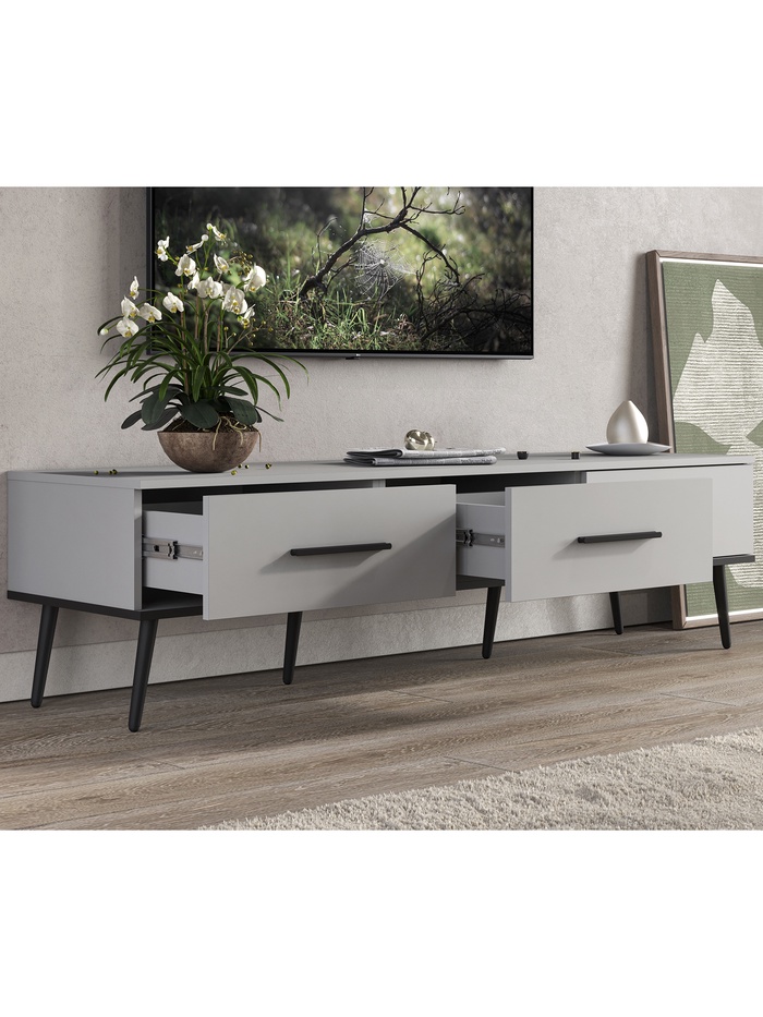 • Удобство использования: оптимальная высота и продуманное внутреннее пространство позволяют разместить ТВ, приставки, декор и аксессуары.