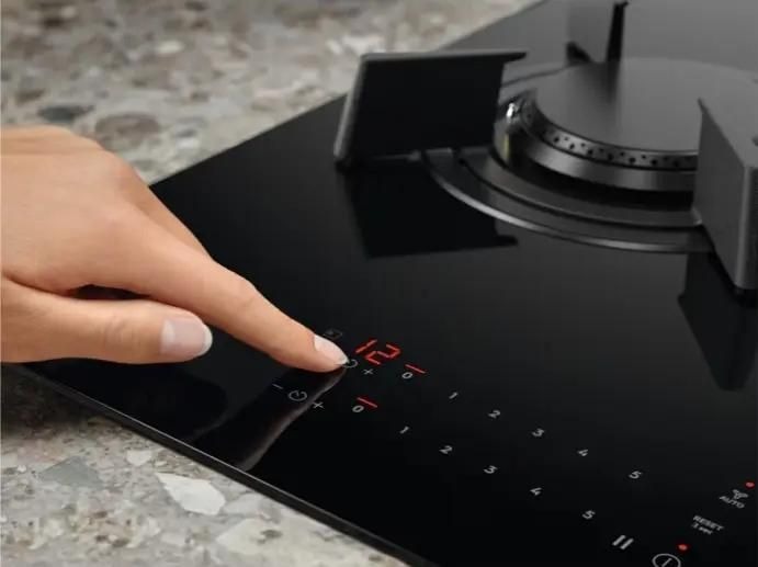 Управление  осуществляется с помощью сенсорных элементов и цифрового дисплея, обеспечивающих точность и удобство в работе. Регулировка мощности газовой горелки производится при помощи поворотной ручки со встроенным автоподжигом, который обеспечивает мгновенное и безопасное зажигание пламени. Наличие таймера позволяет контролировать процесс приготовления и не беспокоиться о времени, а индикаторы остаточного тепла и электронные индикаторы контроля пламени FlameLight обеспечивают дополнительную безопасность и информативность.