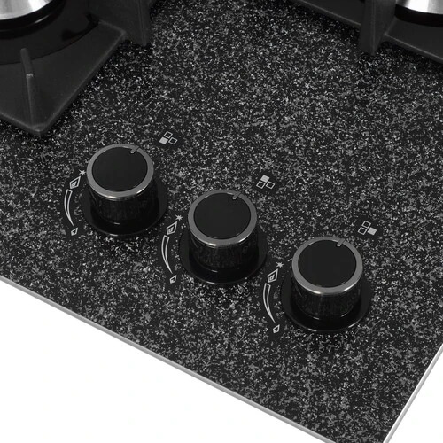 Газовая варочная поверхность Gefest PVG 2100-01 K73 привлекает внимание узким дизайном и имитацией текстуры камня на черном закаленном стекле. Такая плита не только красиво выглядит, но и легко очищается от сложных загрязнений без появления царапин и потертостей. Индивидуальные чугунные решетки сохраняют устойчивость посуды с диаметром дна 12-28 см.