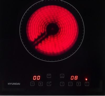 Данная варочная панель имеет классический электрический нагрев, при котором сначала раскаляются конфорки (точнее элементы, скрытые под поверхностью), а затем передают это тепло посуде. Разобраться, как с ней работать, просто даже пожилым людям, привыкшим к плитам. Количество конфорок в этой модели: 2.