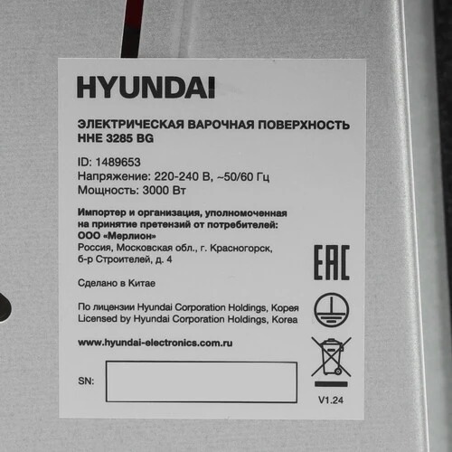Варочная поверхность Hyundai HHE 3285 BG черный