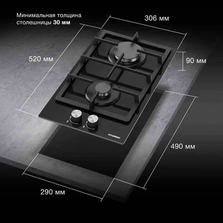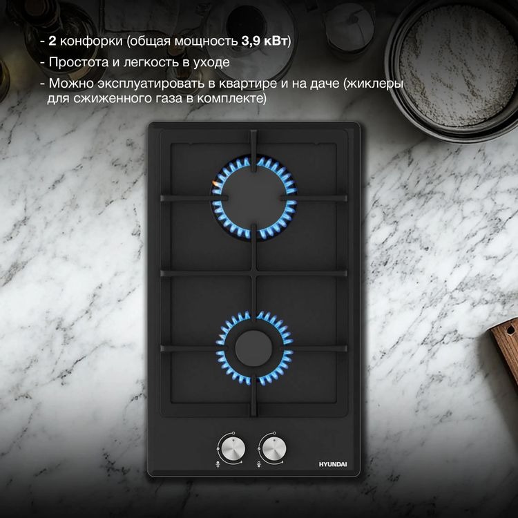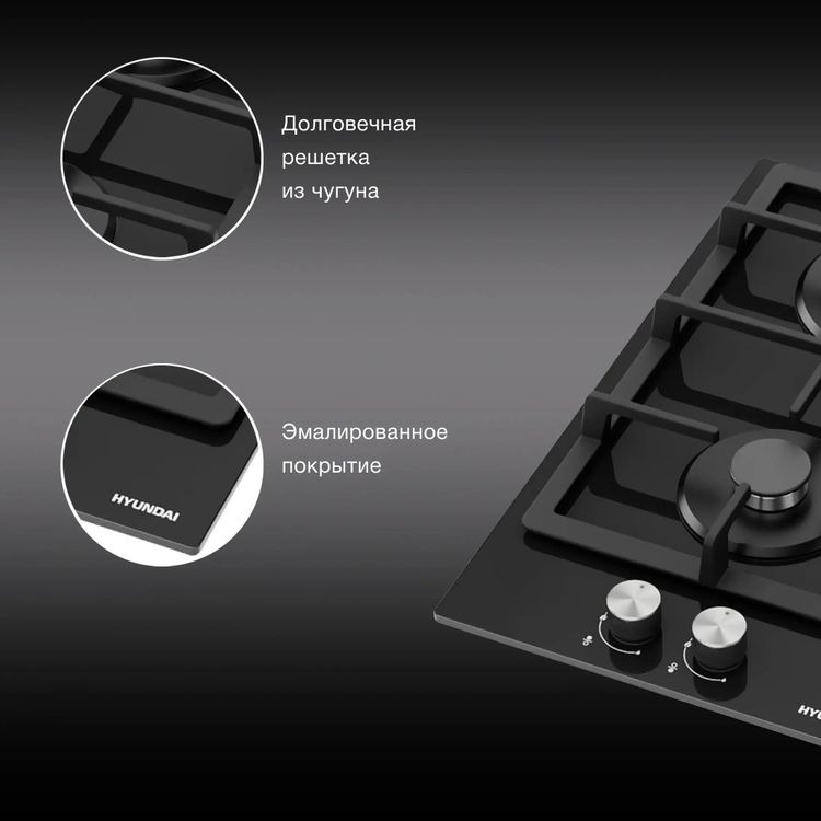Газовая варочная панель Hyundai HHG-3230 BK сочетает строгий черный цвет и минималистичный силуэт, который органично впишется в современную кухню. Панель без рамки выглядит цельно и визуально расширяет поверхность столешницы. Закаленное стекло создает эффект глубины и придает изделию премиальный вид, при этом оно легко очищается от капель и загрязнений.
