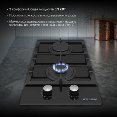 Газовая варочная поверхность Hyundai HHG 3235 BG с двумя конфорками подходит для небольшой семьи. На панели из закаленного стекла установлена устойчивая цельная решетка из чугуна. Съемный дизайн облегчает очистку поверхности от брызг жира и остатков пищи. Плита подходит для монтажа в столешницу толщиной более 3 см.