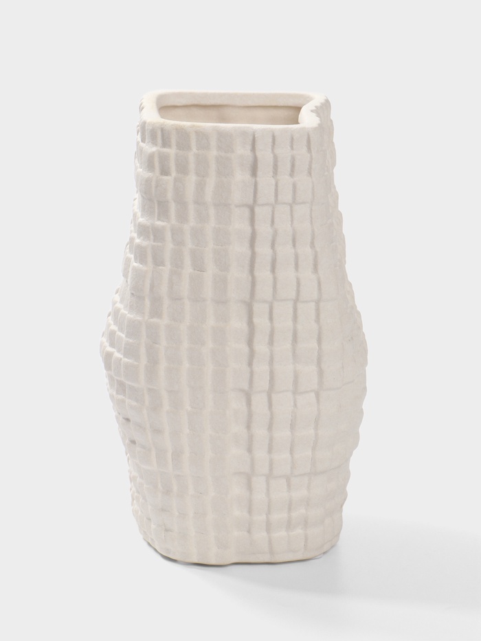 Эта белая керамическая ваза для стола — не просто сосуд для цветов, а законченный предмет интерьера. Её сдержанный цвет и тактильный рельеф поверхности создают выразительный акцент, не перегружая пространство. Ваза гармонично дополнит как минималистичный, так и классический декор, привнося ощущение умиротворённой цельности.
