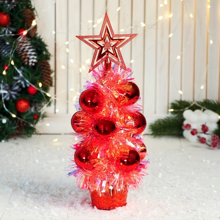 Настольная ёлка «Праздничная перламутровая» — это яркий и компактный элемент новогоднего убранства. Мини-ёлка высотой 26 см с диаметром основания 10 см выполнена из ПВХ-веток, имеет насыщенный красный цвет хвои и стильное исполнение в духе барокко, советского дизайна и фьюжн-подхода. Подходит для дома, офиса или детской комнаты как самостоятельный декор или часть праздничной композиции.