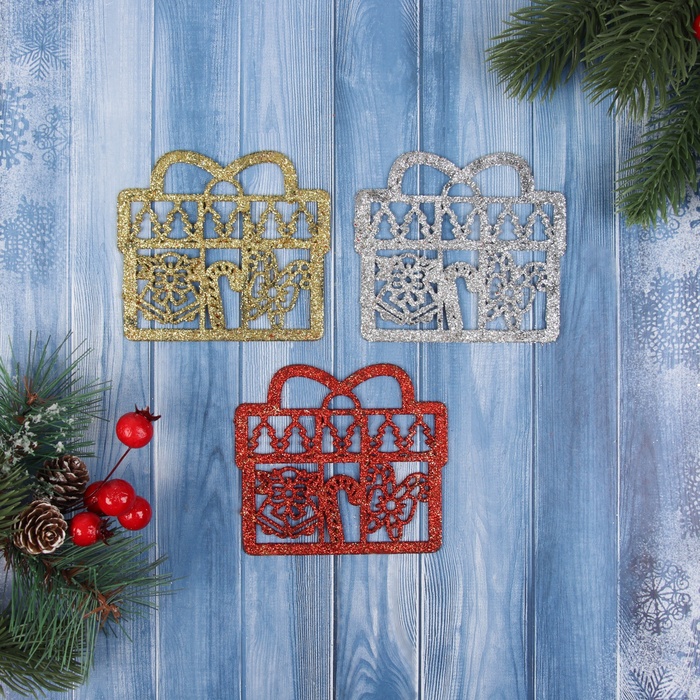 Ёлочная игрушка "Подарок с конфетками" (набор 3 шт) 8х8,5 см, МИКС
