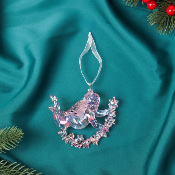 Ёлочная игрушка «Зимнее волшебство. Ангел на звездах» пластик, 7х8 см, сиреневый перелив