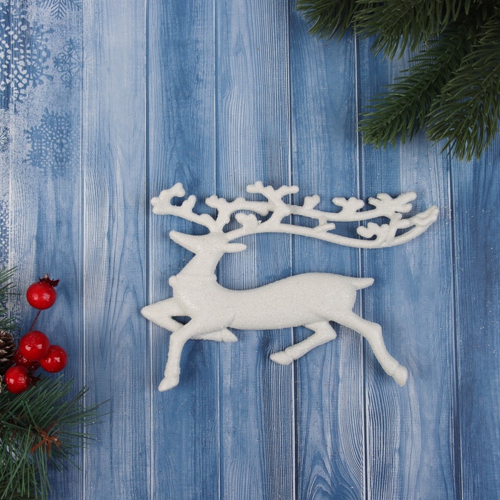 Белая пластиковая фигурка бегущего оленя станет стильным дополнением новогоднего декора. Высота 10 см подчёркивает изящество силуэта и гармонично вписывается в интерьер, оформленный в ар-деко, классическом или скандинавском стиле.