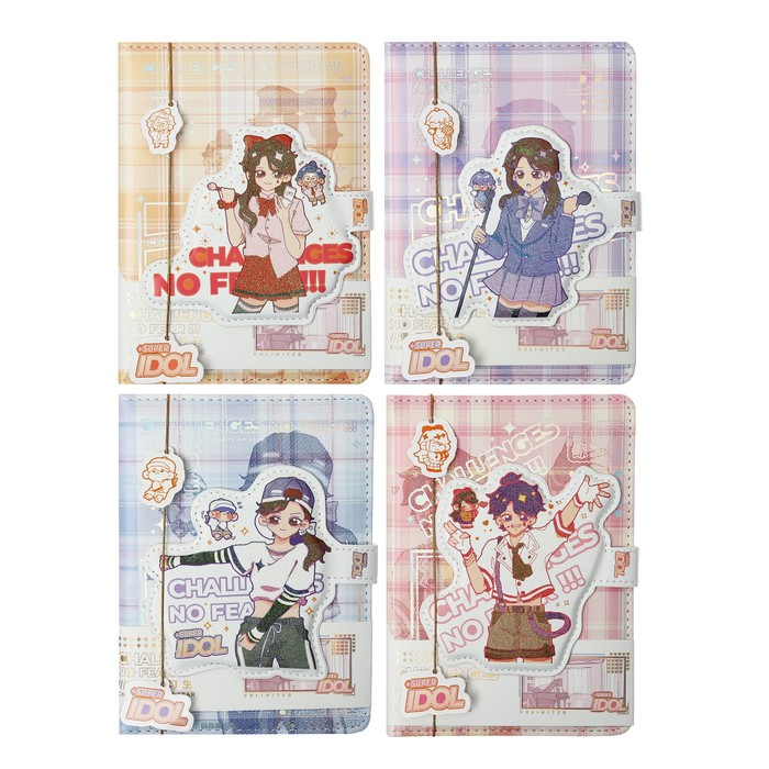 Записная книжка подарочная А6 96 л, цветной блок,с фигурным хлястиком,обл.пвх, Аниме МИКС