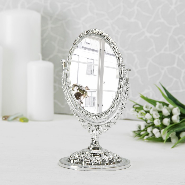 Зеркало настольное "Ажур", круглое, d=12см, двустороннее, с увеличением, цвет серебристый