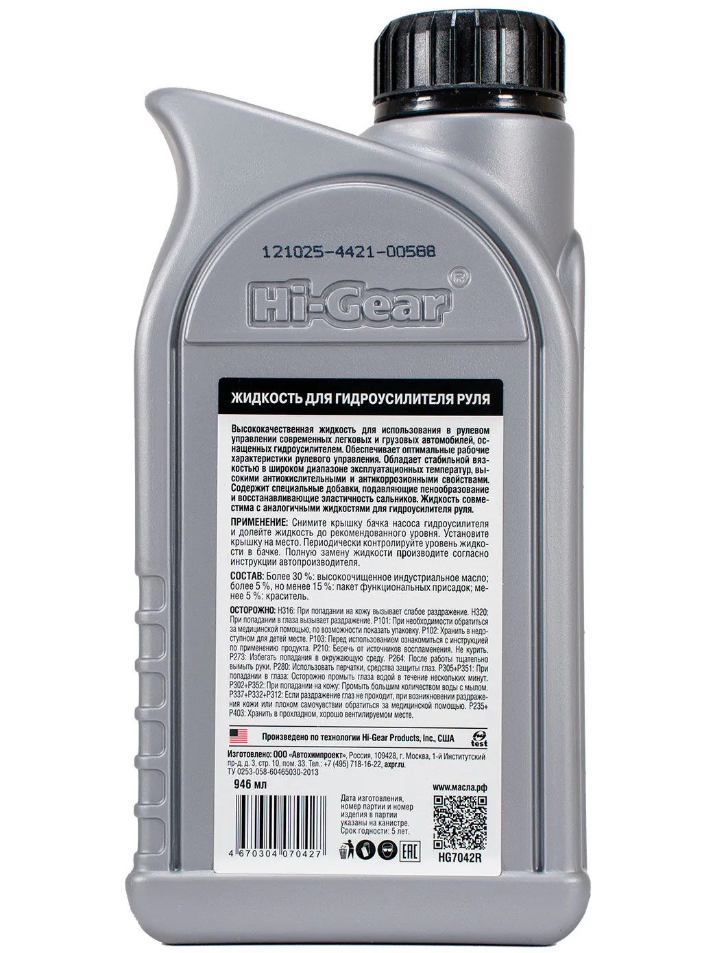 Hi-Gear PSF (HG7042R) — высококачественная жидкость для использования в рулевом управлении современных легковых и грузовых автомобилей. Обеспечивает оптимальные рабочие характеристики рулевого управления, защиту и смазку рулевого механизма, насоса, распределителя и других деталей рулевого управления. Обладает стабильной вязкостью в широком диапазоне эксплуатационных температур, эффективными антиокислительными и антикоррозионными свойствами. Восстанавливает эластичность сальников.
